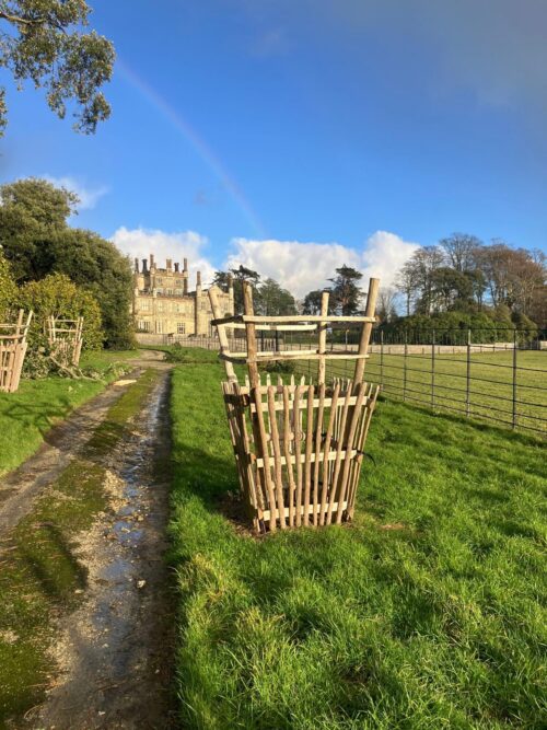 Tree guards can be made from post and rail or pale fencing as required